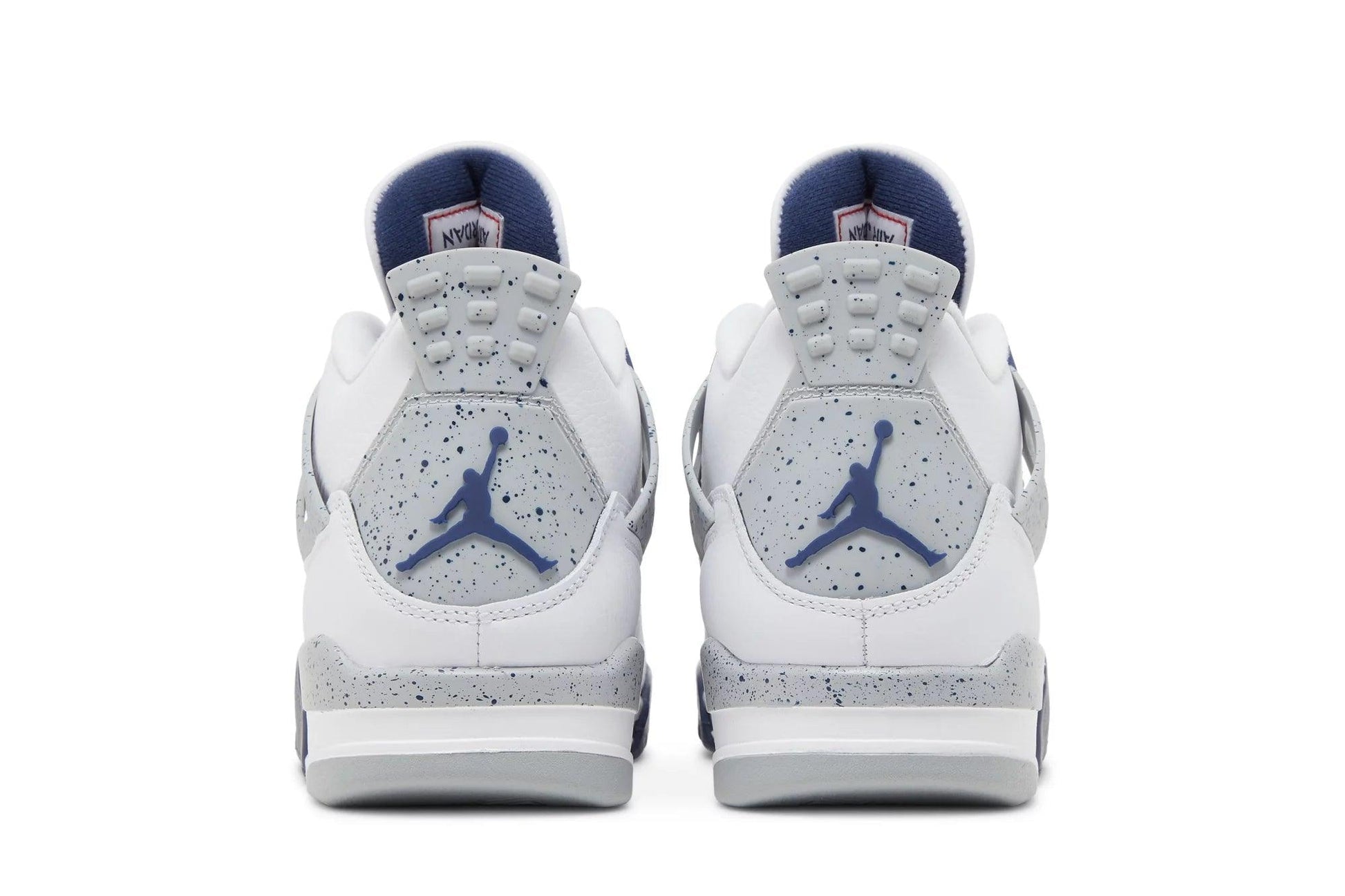 Os tradicionais elementos do Jordan 4, como as sobreposições em cinza com efeito salpicado, a gaiola lateral e a entressola com amortecimento Air, garantem conforto, suporte e estilo. A sola de borracha em preto, branco e azul marinho oferece excelente tração e durabilidade.