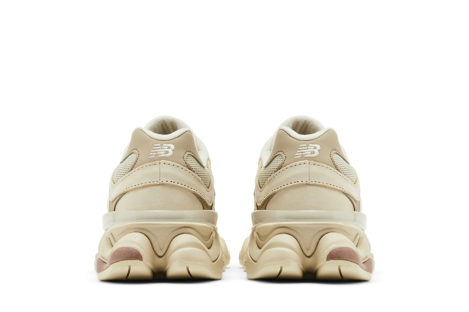 O New Balance 9060 “Bone Sparrow” é uma versão elegante da linha 9060, que combina elementos clássicos da série 99X com uma estética moderna inspirada no início dos anos 2000. Este modelo apresenta um cabedal confeccionado em malha respirável na cor creme (“Bone”), com sobreposições de couro tonais que conferem um visual sofisticado. O logotipo “N” da New Balance aparece na lateral externa em branco moldado, contornado por um tom terracota (“Sparrow”), harmonizando com o emblema “NB 9060” na língua. No calcanhar, destaca-se o logotipo “Flying NB” em uma aba de couro bege.