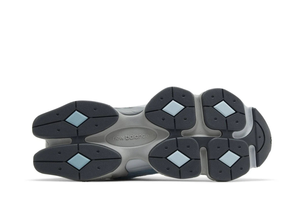 O New Balance 9060 “Chrome Blue” é uma versão marcante da linha 9060, que mescla elementos clássicos da série 99X com uma estética futurista inspirada nos anos 2000. Este modelo apresenta um cabedal confeccionado em malha respirável de cor azul clara, com sobreposições de camurça em tons mais escuros de azul, criando um visual monocromático e sofisticado. O icônico logotipo “N” da New Balance aparece nas laterais, sendo branco com contorno azul escuro em um lado e composto por pequenos traços brancos no outro. Detalhes adicionais incluem o logotipo “NB” no calcanhar e a inscrição “NB 9060” na língua, remetendo ao design original do lace jewel do modelo 991.